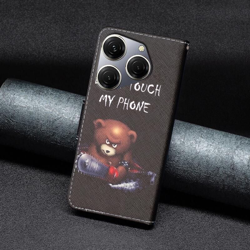 Θήκη τηλεφώνου από δέρμα με πολύχρωμο σχέδιο (αρκούδα) για Tecno Spark 20 Pro.