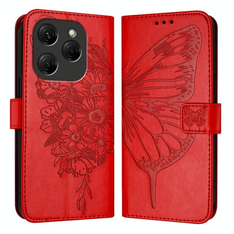 Θήκη τηλεφώνου Tecno Spark 20 Pro με ανάγλυφο σχέδιο πεταλούδας από δέρμα (Μαύρο)