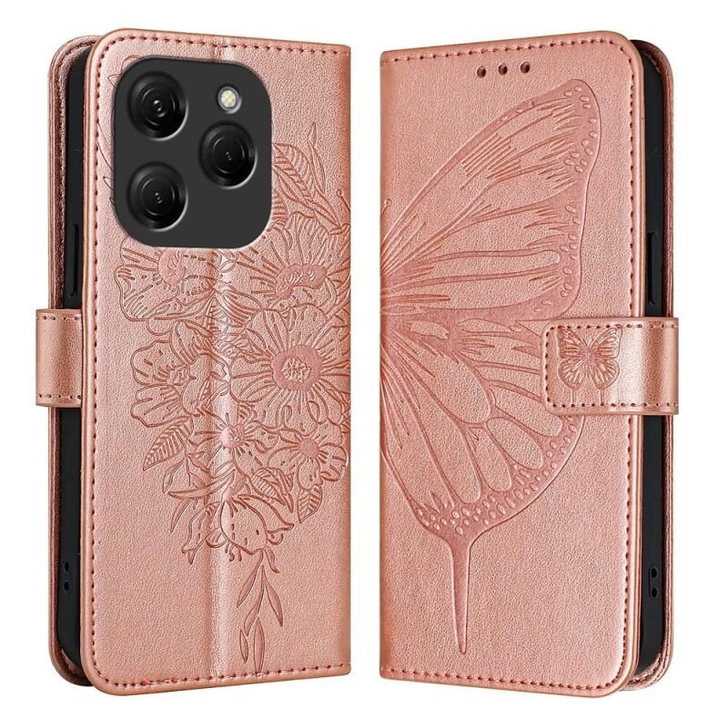 Θήκη τηλεφώνου Tecno Spark 20 Pro με ανάγλυφο σχέδιο πεταλούδας από δέρμα (Μαύρο)