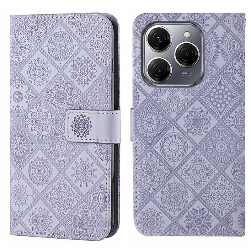 Θήκη τηλεφώνου από δέρμα με ανάγλυφο σχέδιο εθνοτικού στυλ για Tecno Spark 20 Pro (Καφέ)