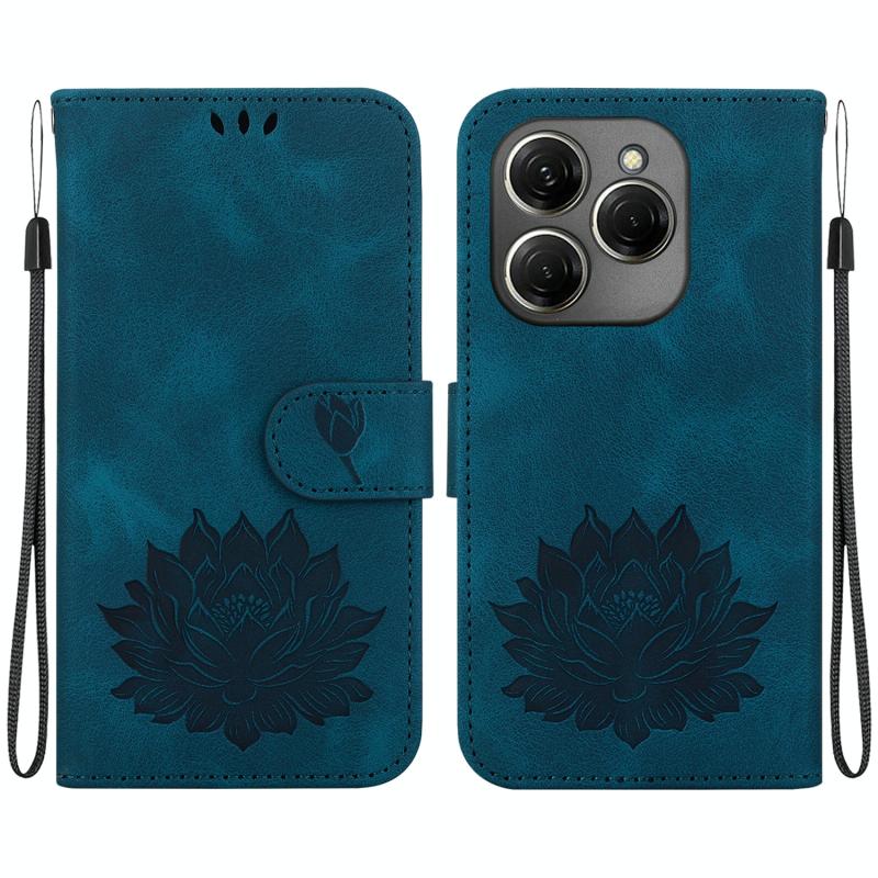 For Tecno Spark 20 Pro Lotus Embossed Leather Phone Case(Dark Blue)