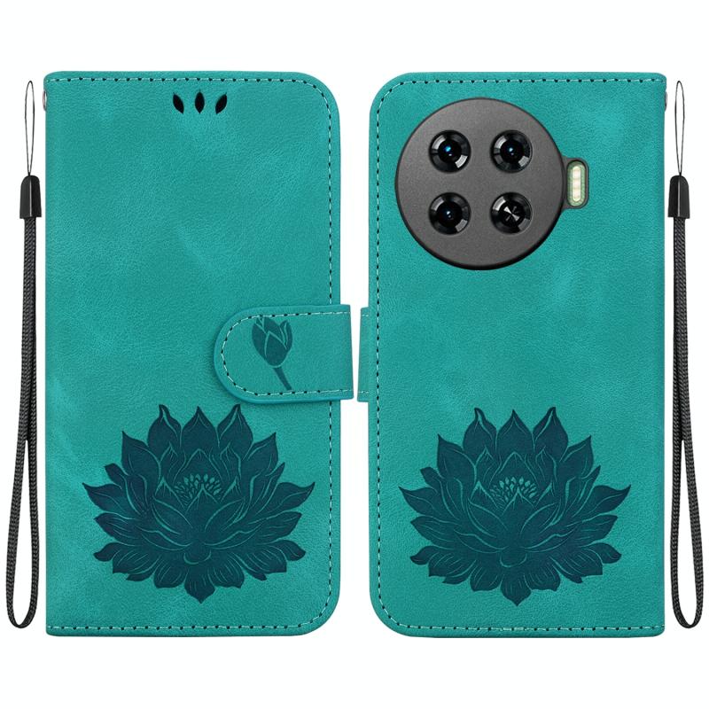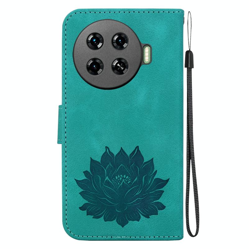 For Tecno Spark 20 Pro+ Lotus Embossed Leather Phone Case(Green)