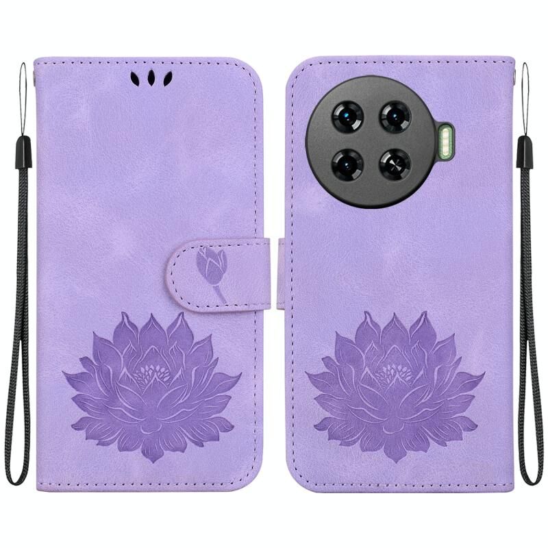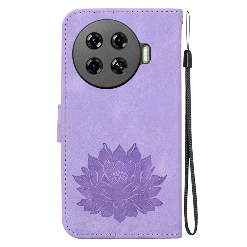 For Tecno Spark 20 Pro+ Lotus Embossed Leather Phone Case(Purple)