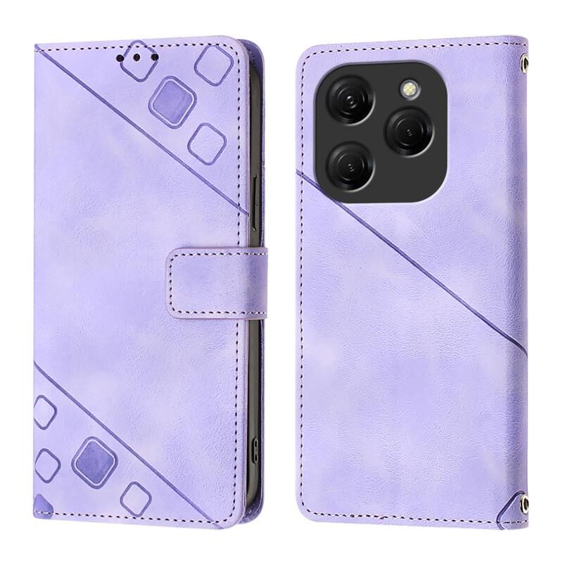Για Tecno Spark 20 Pro Skin Feel ανάγλυφη δερμάτινη θήκη τηλεφώνου (Light Purple)