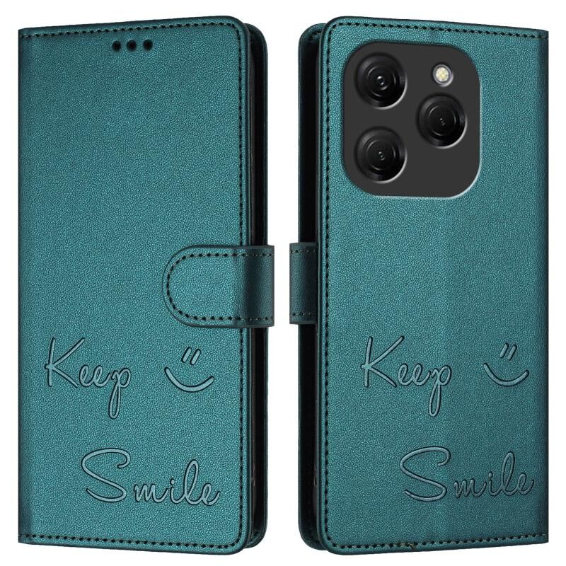 For Tecno Spark 20 Pro Smile Embossing RFID Leather Phone Case(Peacock Green)
