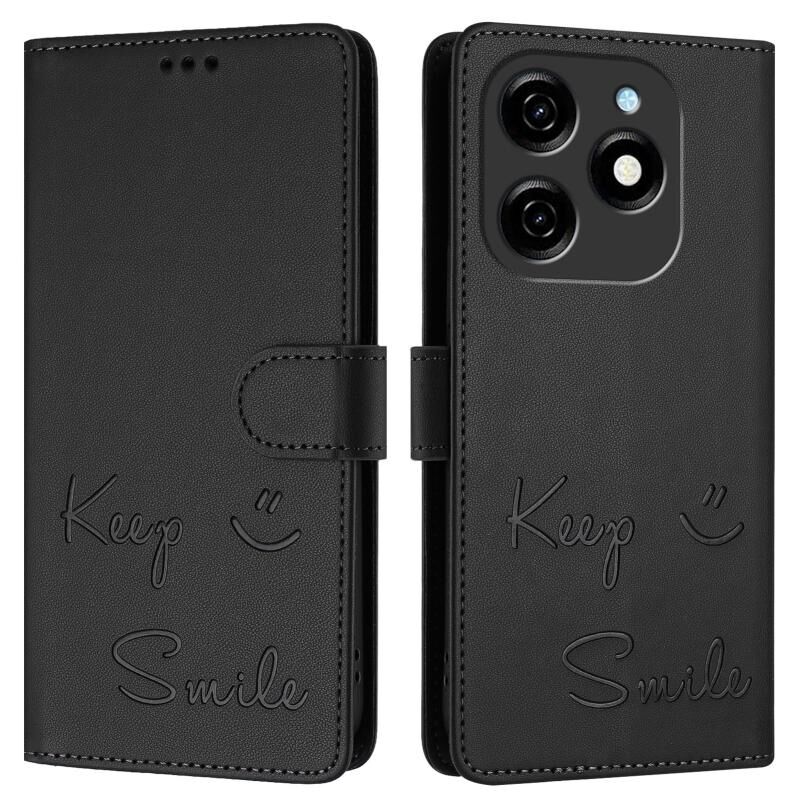 For Tecno Spark 20 Smile Embossing RFID Leather Phone Case(Black)
