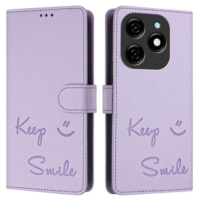 For Tecno Spark 20 Smile Embossing RFID Leather Phone Case(Light Purple)