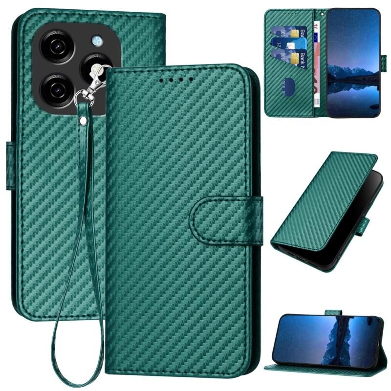 Για Tecno Spark 20 YX0070 Carbon Fiber πόρπη δερμάτινη θήκη τηλεφώνου με κορδόνι (σκούρο πράσινο)