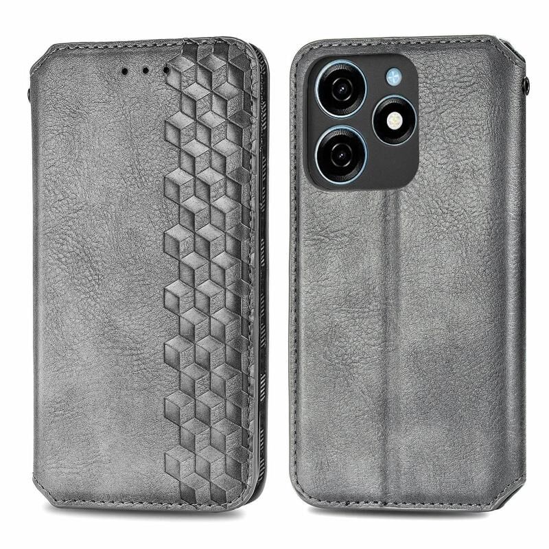 Για Tecno Spark 20C 4G Cubic Grid Pressed μαγνητική δερμάτινη θήκη τηλεφώνου (γκρι)