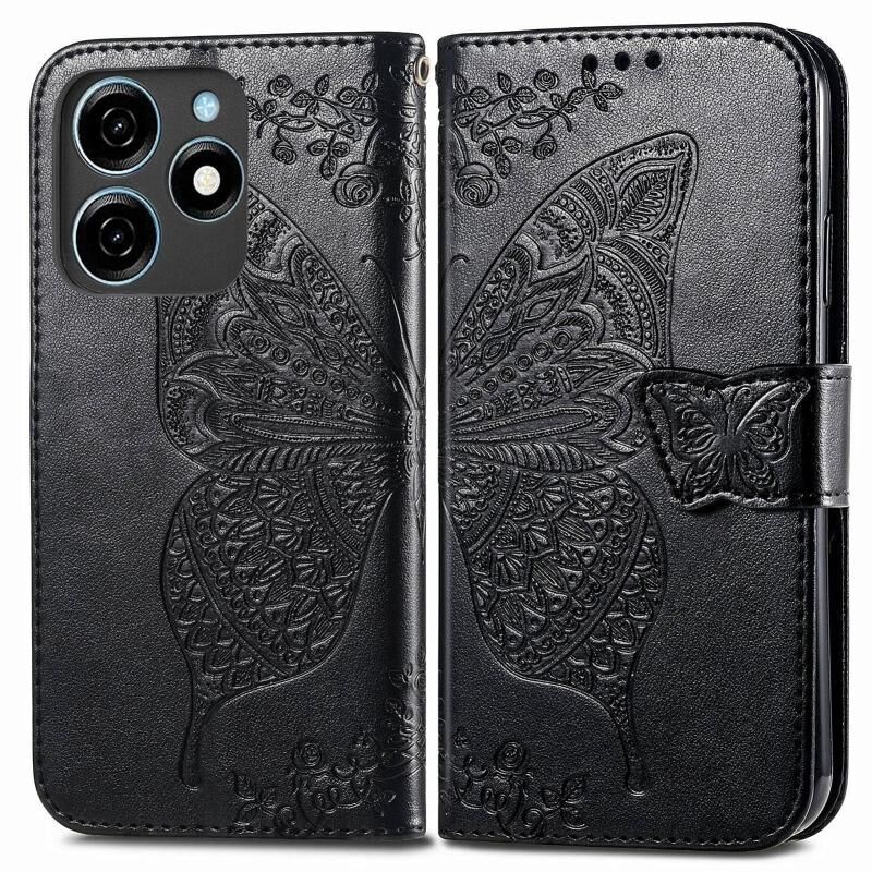 Θήκη τηλεφώνου Tecno Spark 20C Butterfly Love Flower Embossed Leather (Μαύρο)