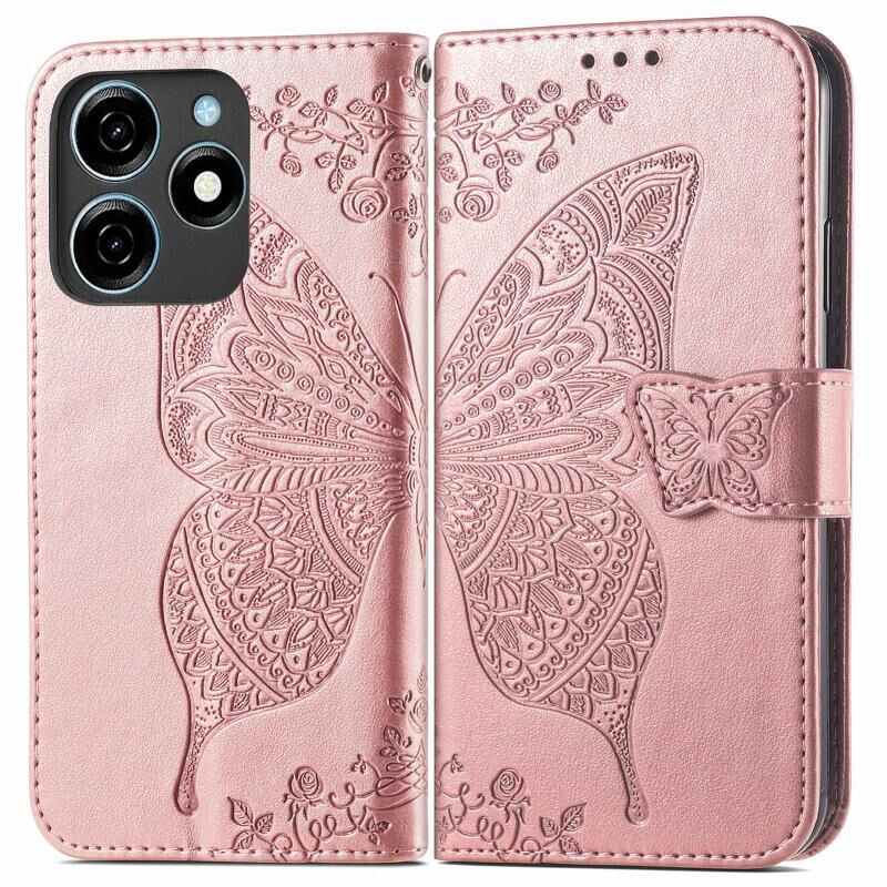 Θήκη τηλεφώνου Tecno Spark 20C Butterfly Love Flower Embossed Leather (Μαύρο)