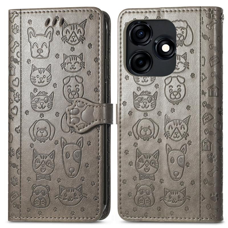 Θήκη τηλεφώνου από δέρμα με ανάγλυφο σχέδιο γάτας και σκύλου για Tecno Spark 20C / GO 2024 (Μπλε)