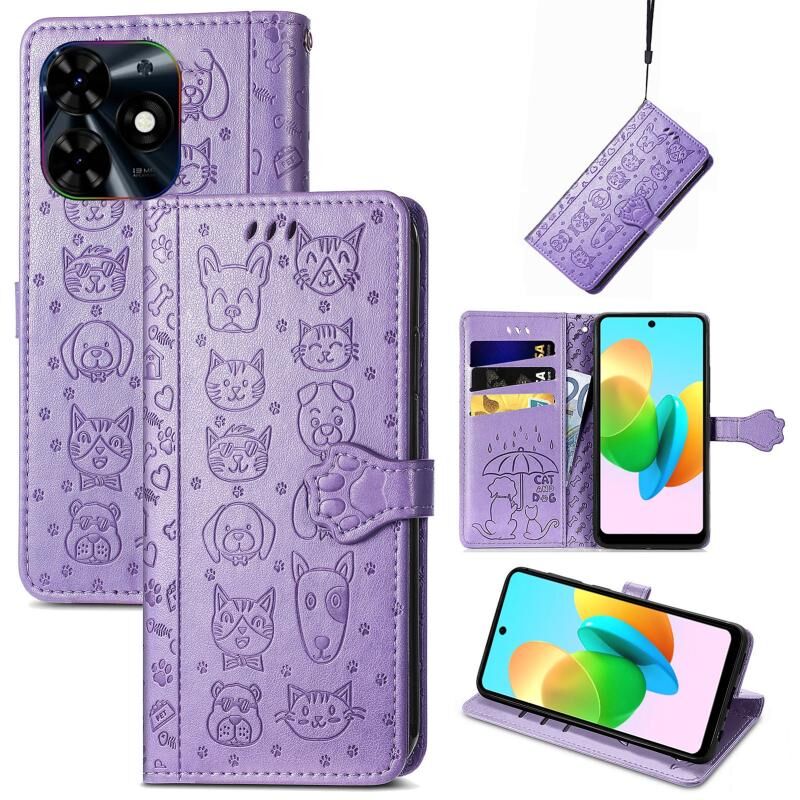 Θήκη τηλεφώνου από δέρμα με ανάγλυφο σχέδιο γάτας και σκύλου για Tecno Spark 20C / GO 2024 (Μπλε)