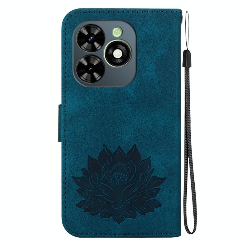 For Tecno Spark 20C / Pop 8 Lotus Embossed Leather Phone Case(Dark Blue)