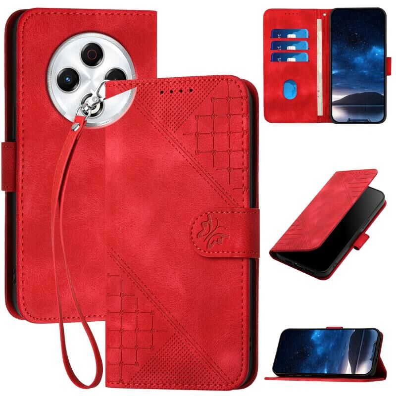 For Tecno Spark 30 4G Grid Butterfly Embossed Pattern Leather Phone Case with Lanyard(Red)
