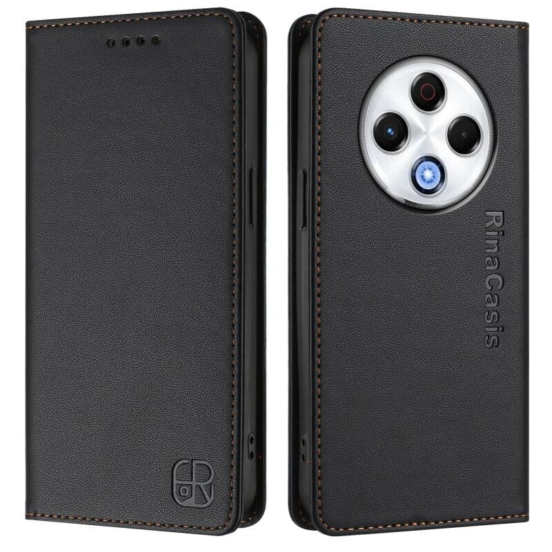 For Tecno Spark 30 4G RC01 Dual-Folded Magnetic Suction RFID Leather Phone Case(Black)