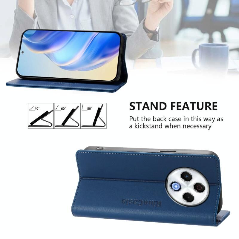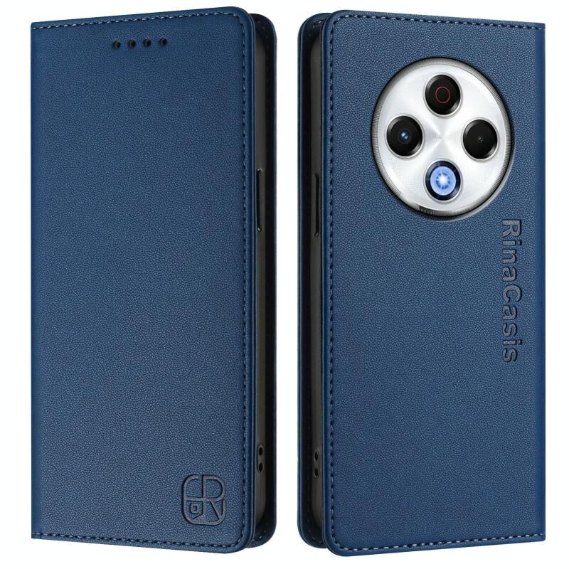 For Tecno Spark 30 4G RC01 Dual-Folded Magnetic Suction RFID Leather Phone Case(Dark Blue)