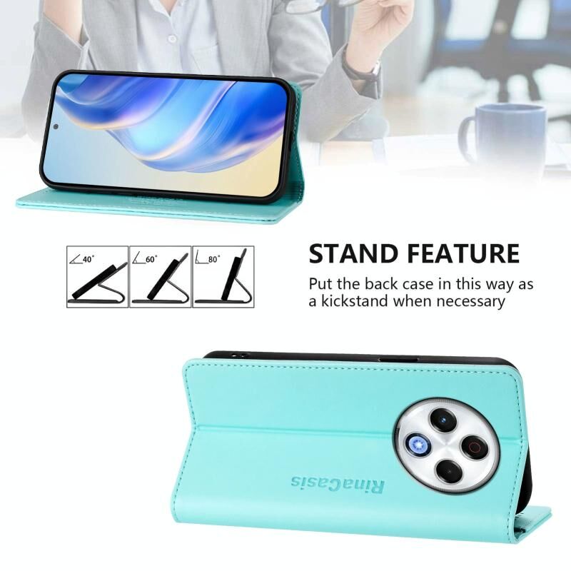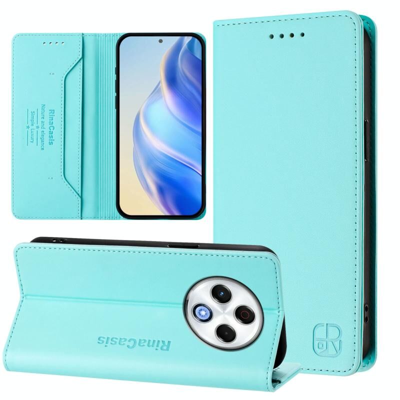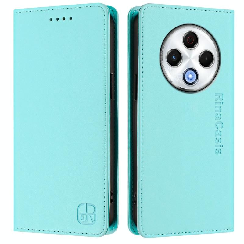 For Tecno Spark 30 4G RC01 Dual-Folded Magnetic Suction RFID Leather Phone Case(Mint Green)