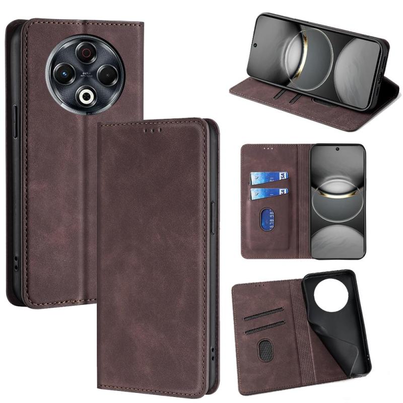 For Tecno Spark 30 4G Skin Feel Magnetic Leather Phone Case(Dark Brown)