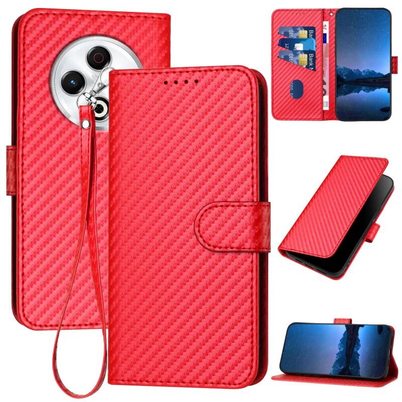 Για Tecno Spark 30 4G YX0070 Carbon Fiber πόρπη δερμάτινη θήκη τηλεφώνου με κορδόνι (κόκκινο)