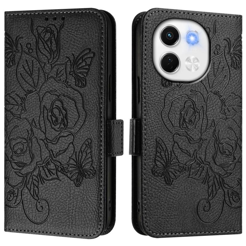 For Tecno Spark 30 5G Embossed Rose RFID Anti-theft Leather Phone Case(Black)