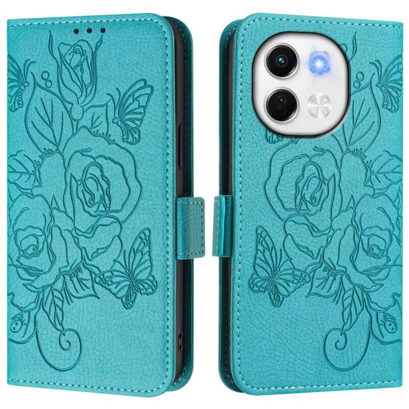 For Tecno Spark 30 5G Embossed Rose RFID Anti-theft Leather Phone Case(Light Blue)