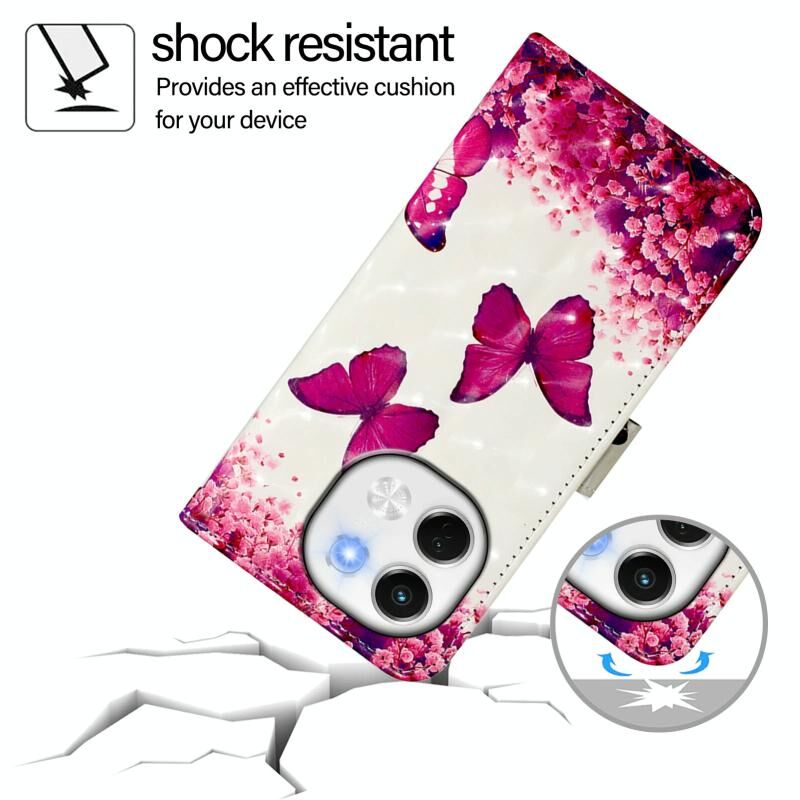 Θήκη τηλεφώνου από δέρμα με οριζόντιο άνοιγμα και τρισδιάστατη ζωγραφική για Tecno Spark 30 5G / Pova 6 Neo 5G (Ροζ Πεταλούδα)