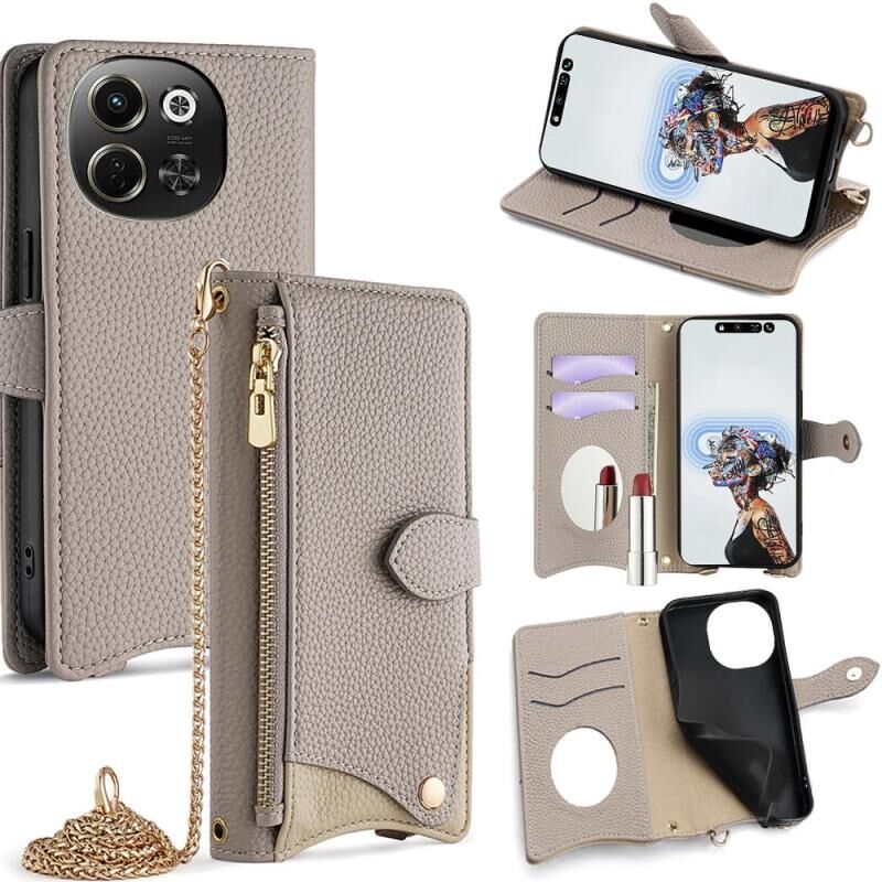 For Tecno Spark 30 5G / Pova 6 Neo 5G Crossbody Chain Fishtail Litchi Leather Phone Case(Grey)