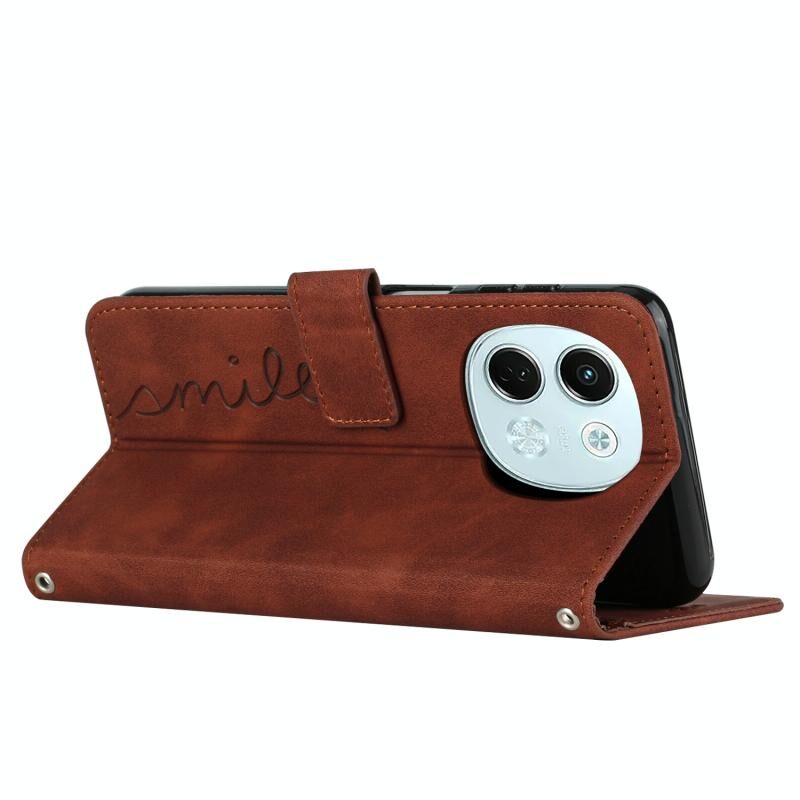 Για Tecno Spark 30 5G Skin Feel Heart ανάγλυφη δερμάτινη θήκη τηλεφώνου με μακρύ κορδόνι (καφέ)