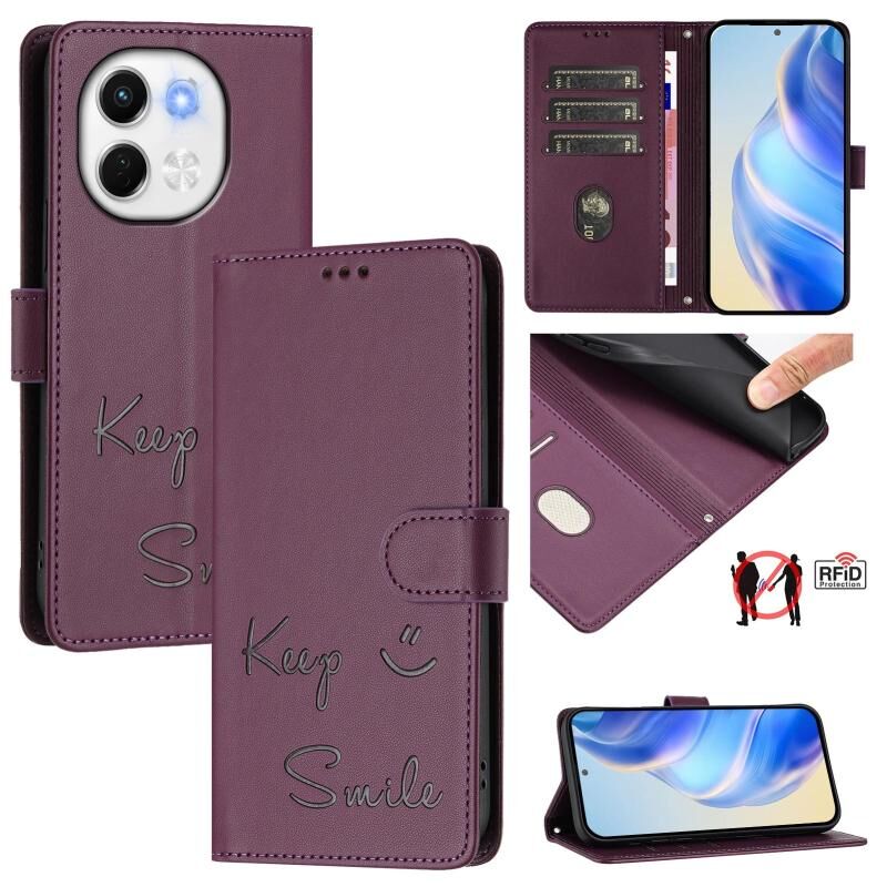 For Tecno Spark 30 5G Smile Embossing RFID Leather Phone Case(Violet)