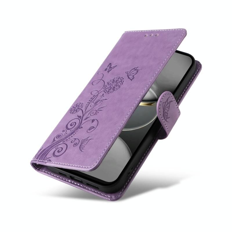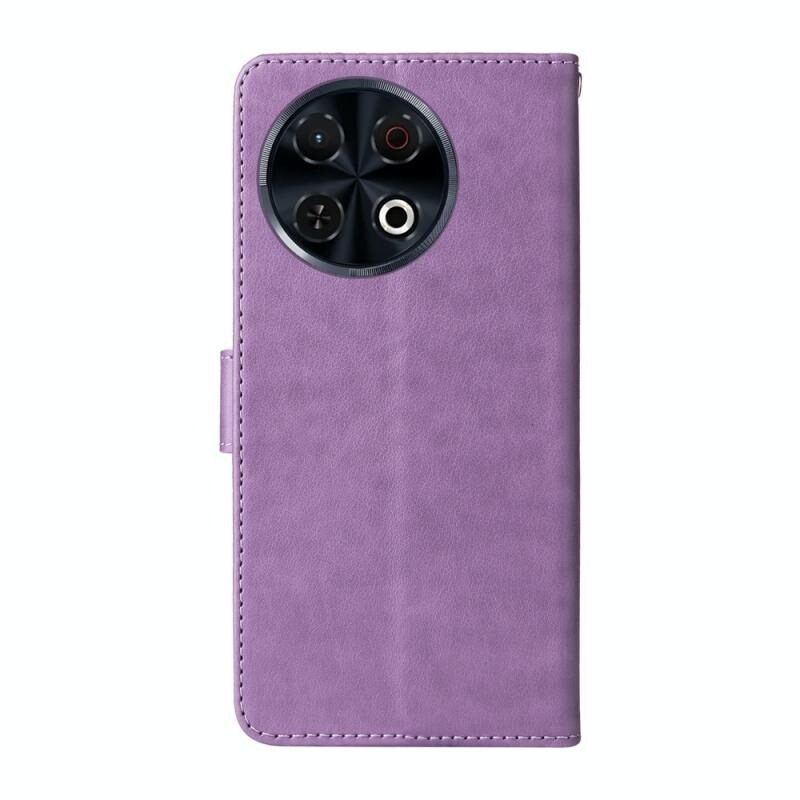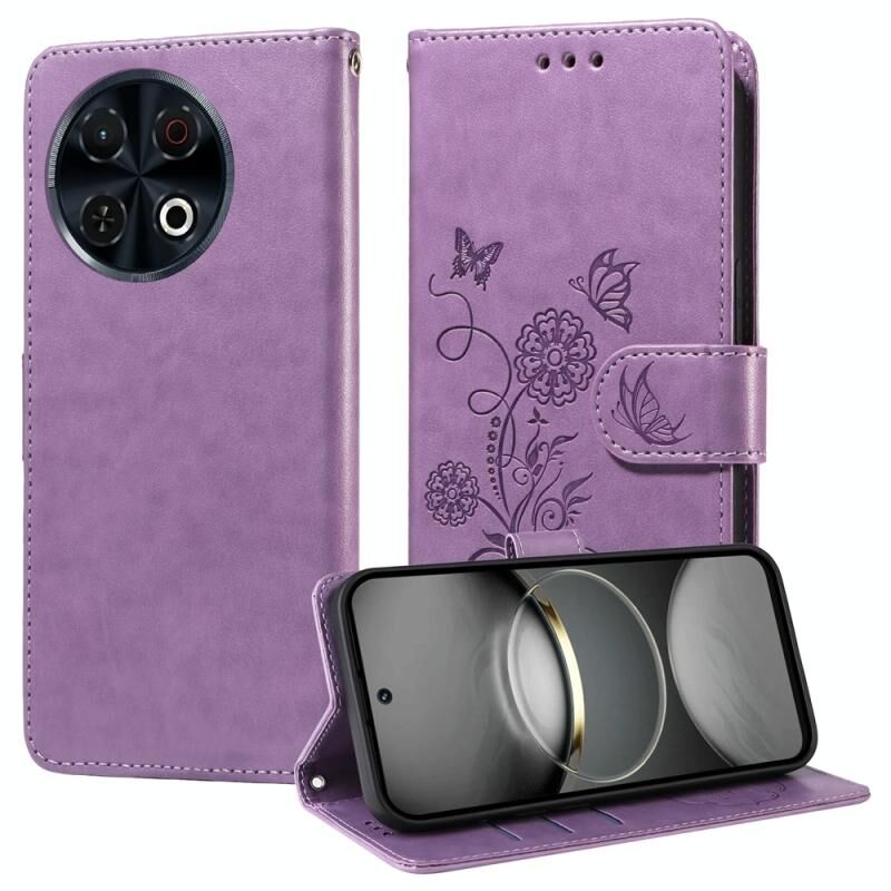 Θήκη τηλεφώνου από δέρμα με ανάγλυφα σχέδια πεταλούδας και λουλουδιών για Tecno Spark 30 Pro 4G (Μωβ)