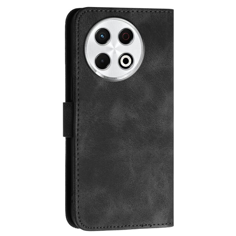 For Tecno Spark 30 Pro 4G Grid Butterfly Embossed Pattern Leather Phone Case with Lanyard(Black)