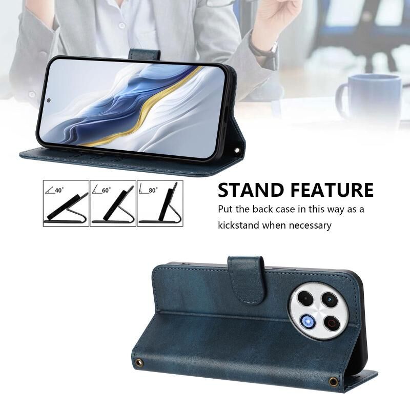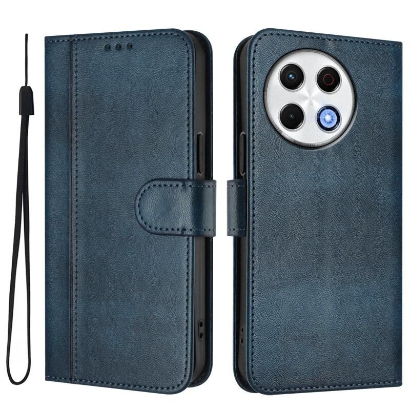 For Tecno Spark 30 Pro 4G Line Splicing Buckle Retro Leather Phone Case(Dark Blue)