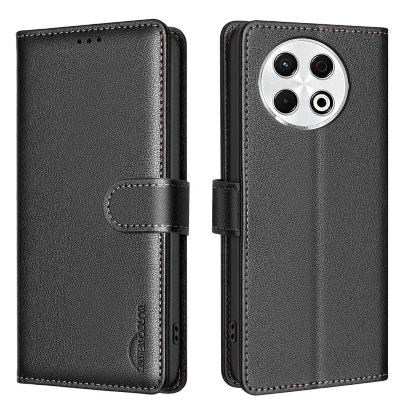 Θήκη τηλεφώνου από δέρμα με υφή Litchi, αντι-κλοπής RFID για Tecno Spark 30 Pro 4G (Μαύρο)