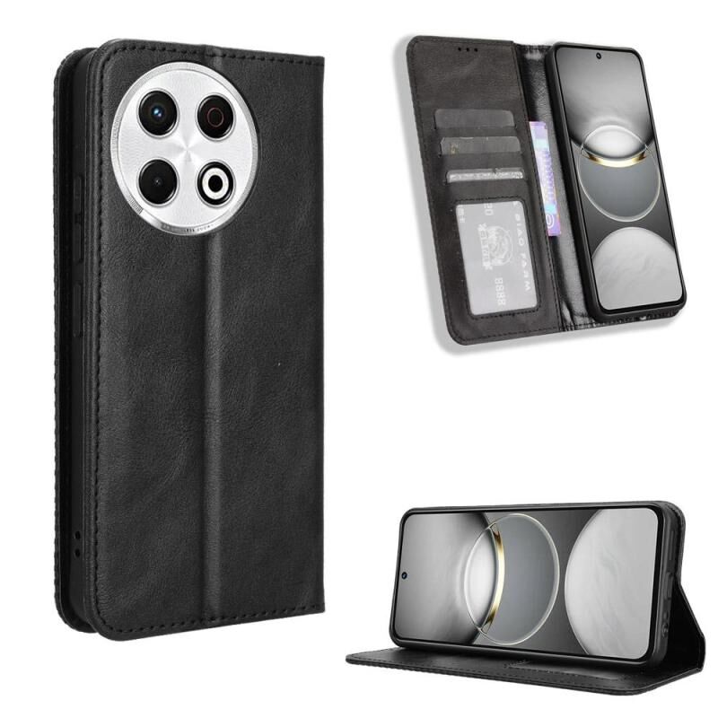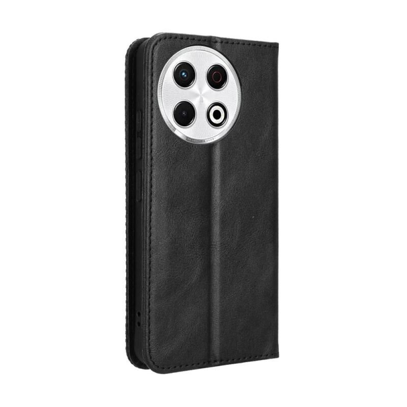 Για Tecno Spark 30 Pro 4G Μαγνητική πόρπη ρετρό υφή δερμάτινη θήκη τηλεφώνου (μαύρο)