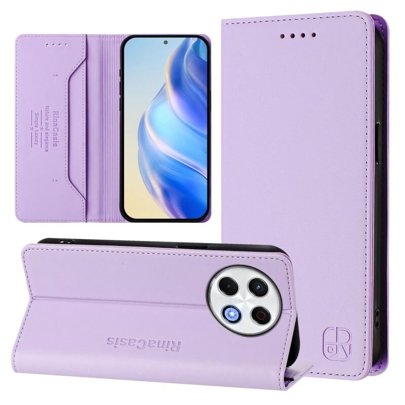 For Tecno Spark 30 Pro 4G RC01 Dual-Folded Magnetic Suction RFID Leather Phone Case(Light Purple)