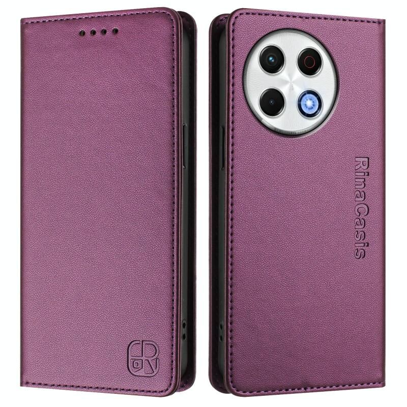 For Tecno Spark 30 Pro 4G RC01 Dual-Folded Magnetic Suction RFID Leather Phone Case(Violet)