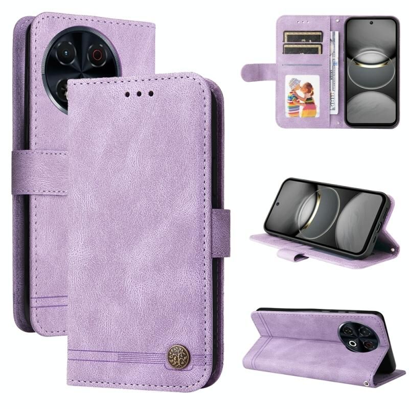 Για Tecno Spark 30 Pro 4G Skin Feel Life Tree Metal Button Leather Phone Case (μωβ)