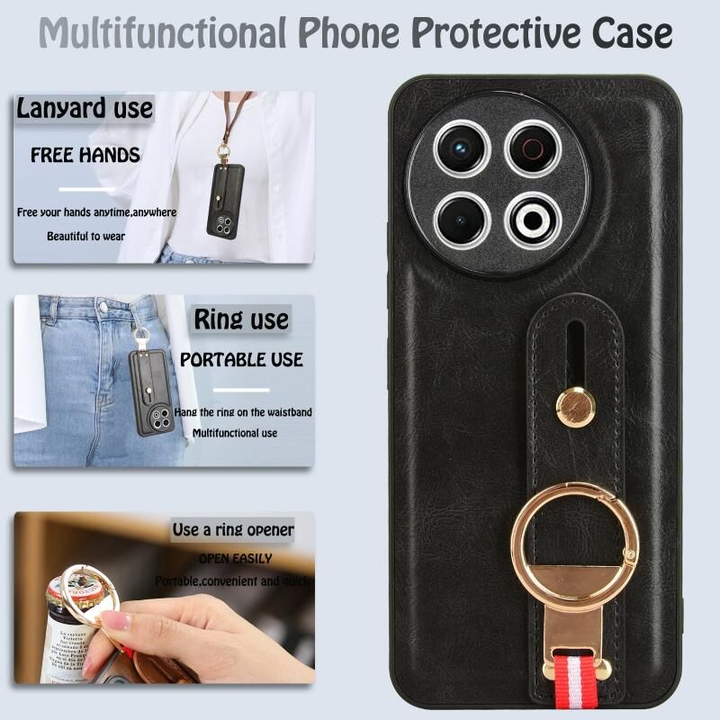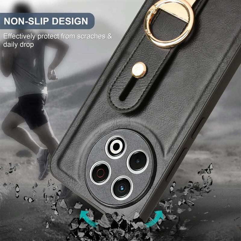 Για Tecno Spark 30 Pro 4G Wristband δερμάτινη πίσω θήκη τηλεφώνου (Μαύρο)