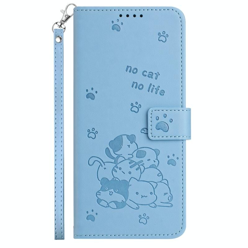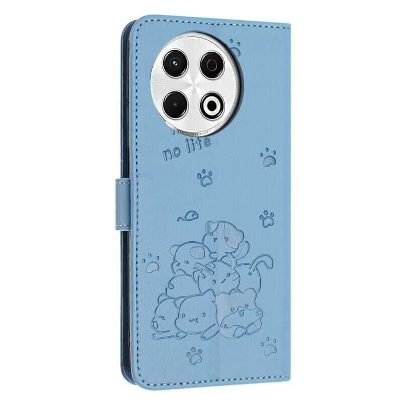 Θήκη δερμάτινη για Tecno Spark 30 Pro με ανάγλυφο σχέδιο γατάκι και λουρί (Μωβ)