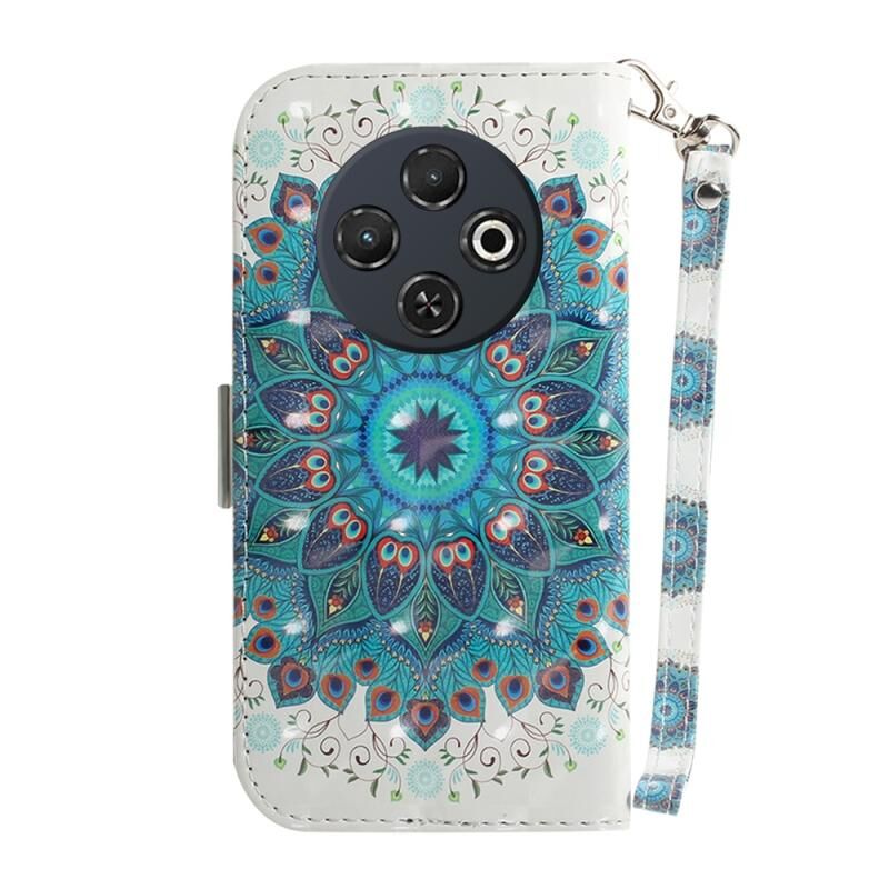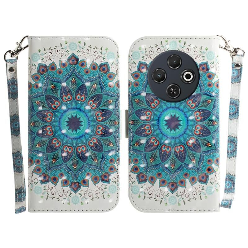 Θήκη τηλεφώνου δερμάτινη, οριζόντια, αναδιπλούμενη, 3D με χρώματα (Στεφάνι Παγωνιού) για Tecno Spark 30C.