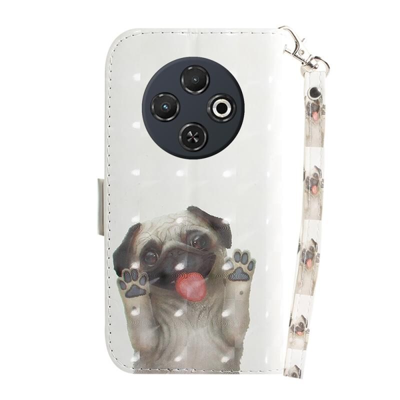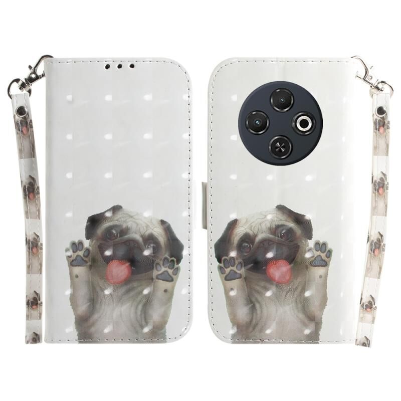 Θήκη τηλεφώνου δερμάτινη, οριζόντια, αναδιπλούμενη, με έγχρωμο 3D σχέδιο (Pug) για Tecno Spark 30C.