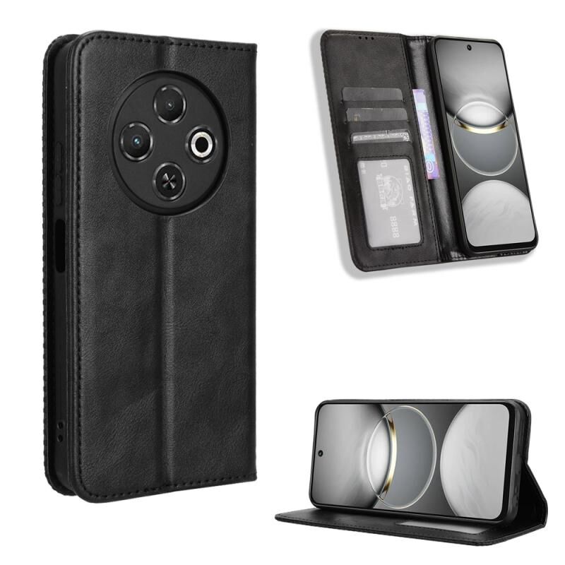 Για Tecno Spark 30C 4G Μαγνητική πόρπη ρετρό υφή δερμάτινη θήκη τηλεφώνου (μαύρο)