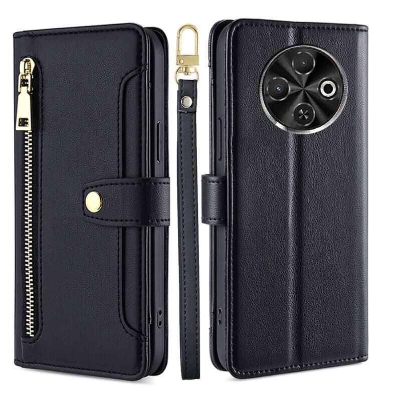 Για Tecno Spark 30C 4G Sheep Texture Cross-body φερμουάρ πορτοφόλι δερμάτινη θήκη τηλεφώνου (μαύρο)