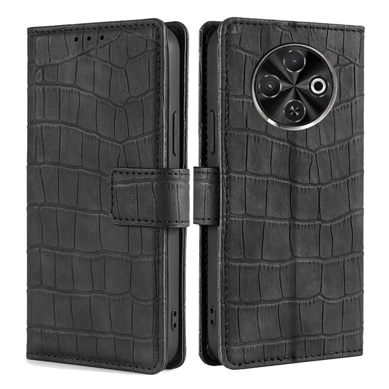 For Tecno Spark 30C 4G Skin Feel Crocodile Magnetic Clasp Leather Phone Case(Black)