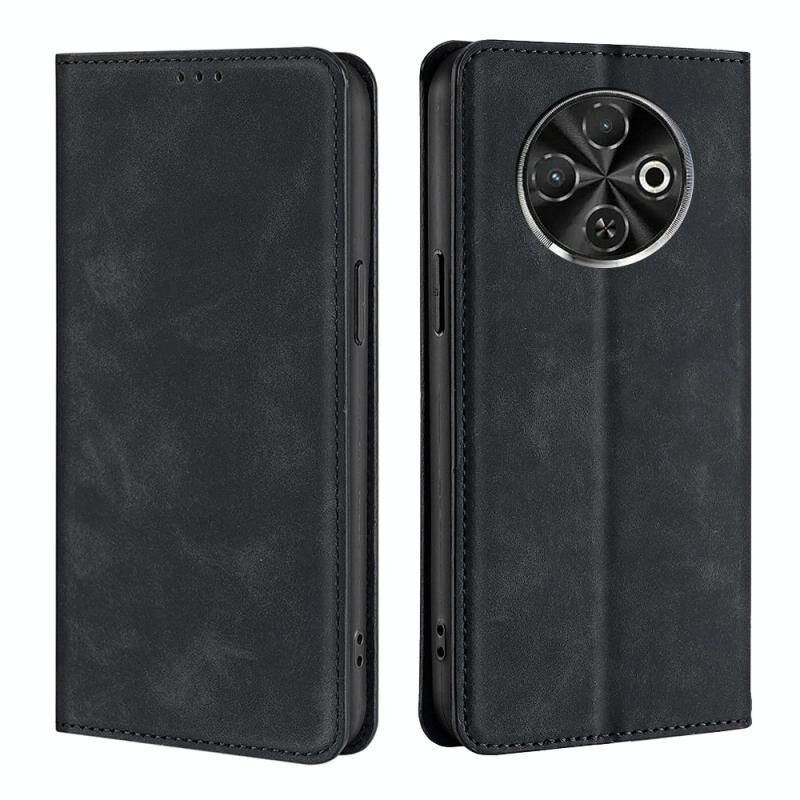 Για Tecno Spark 30C 4G Skin Feel μαγνητική δερμάτινη θήκη τηλεφώνου (μαύρο)