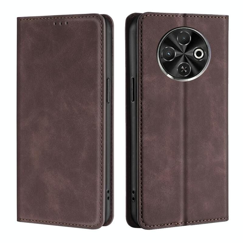 Για Tecno Spark 30C 4G Skin Feel μαγνητική δερμάτινη θήκη τηλεφώνου (σκούρο καφέ)