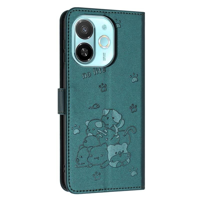 For Tecno Spark 30C 5G / Pop 9 5G Embossed Kitten Phone Leather Case with Lanyard(Dark Green)