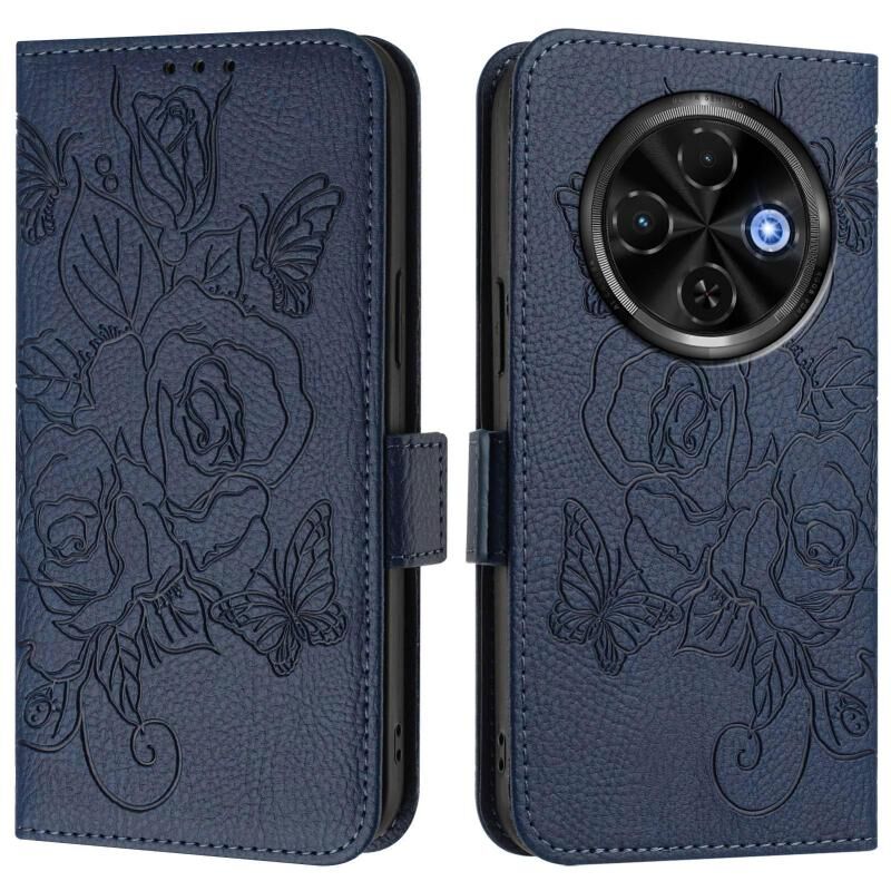 For Tecno Spark 30C 5G / Pop 9 5G Embossed Rose RFID Anti-theft Leather Phone Case(Dark Blue)