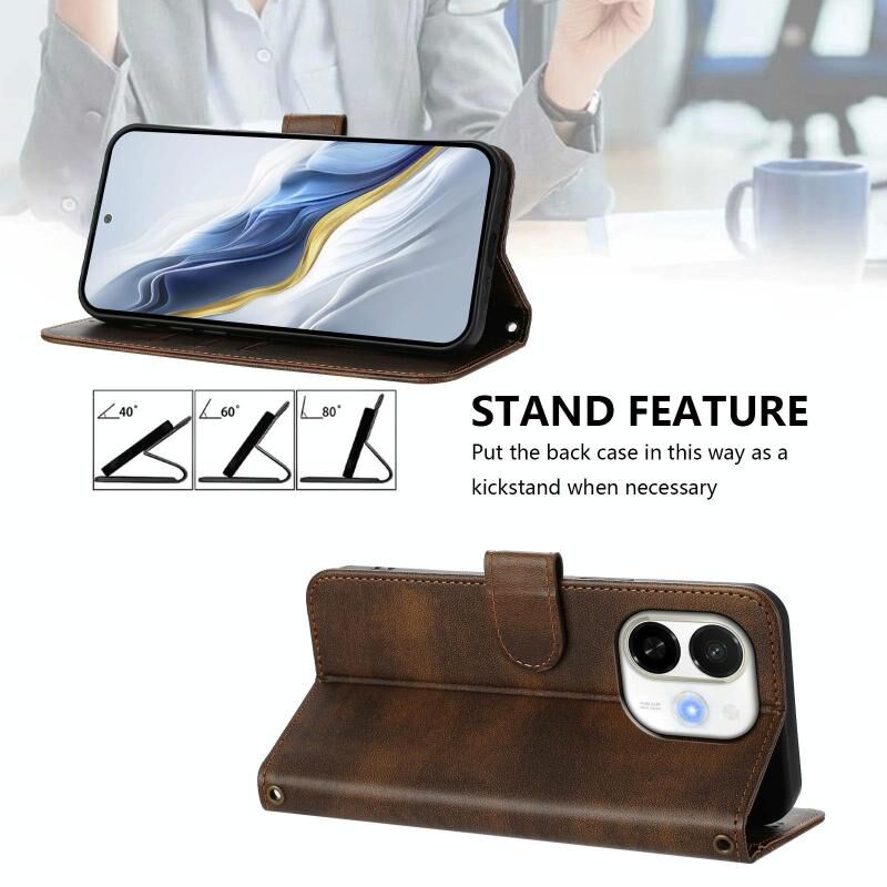 Θήκη τηλεφώνου από δέρμα retro με σχέδιο patchwork για Tecno Spark 30C 5G / Pop 9 5G (Μαύρο)